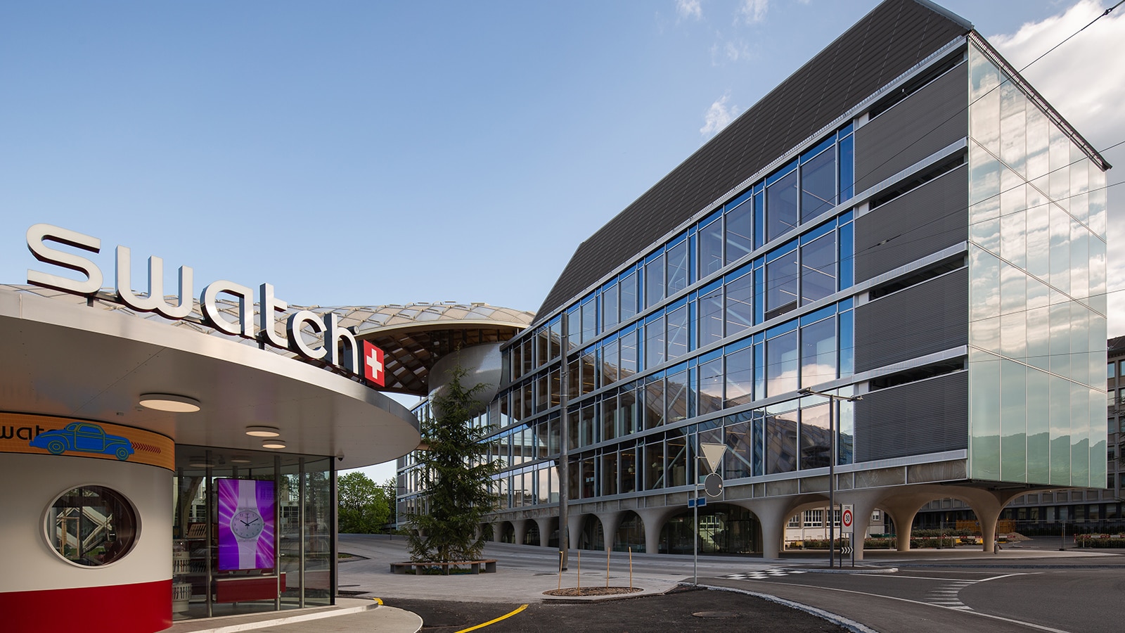 Das Gebäude befindet sich zwischen den historischen Gebäuden von Omega und dem neuen Hauptsitz von Swatch. Die Konstruktion, welche scheinbar mühelos etwas erhoben auf Pfeilern steht, zeichnet sich durch eine moderne Glasfassade aus, die Leichtigkeit und Transparenz widerspiegelt.